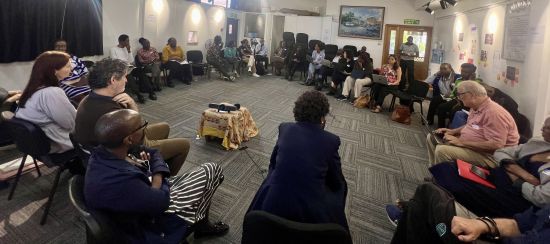 This is an image taken during the "live peer review" portion of Day 1 of the "Extending Knowledge and Publishing Infrastructures in and from Africa" Workshop held at the British Institute of Eastern Africa (BIEA) on December 8, 2025.